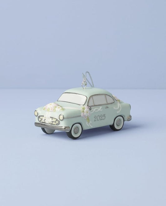 Lenox Ornament, 2025 Just Married Vintage Car Christmas Ornament, Made from Porcelain, Christmas Decorations with Silver Accents and Hanging Cord, Winter Decor, Tree Decor, Car Design (Blue, 1 Piece)