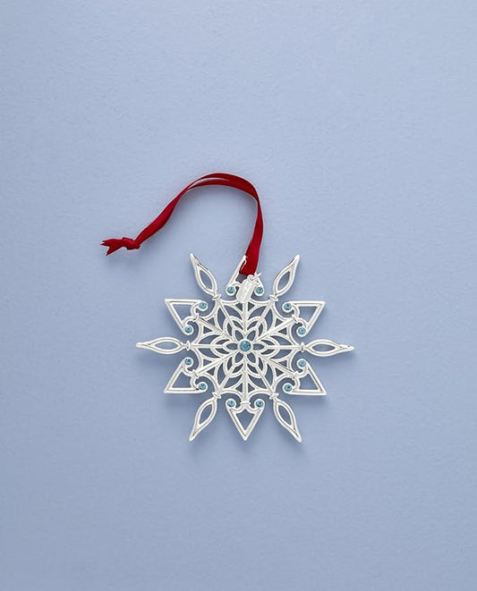 Lenox Ornament, 2025 Snow Majesty Silverplate Ornament, Stainless Steel Christmas Tree Decoration, Snowflake Design, Blue Jeweled Accents, Red Ribbon for Hanging, Christmas Decoration(Silver, 1 Piece)