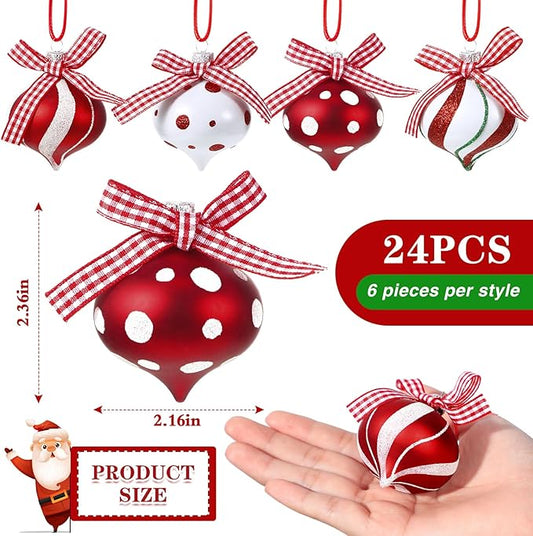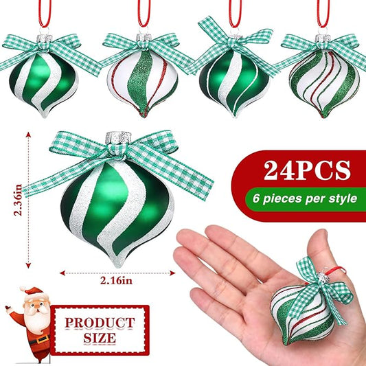 Syhood 24 Pcs Christmas Tree Ornaments, Christmas Ball Decorations Set, Shatterproof Baubles Xmas Tree Hanging Decor, Peppermint Candy Ball Red White Green Stripes Party Holiday(Cute,2.36 Inches)