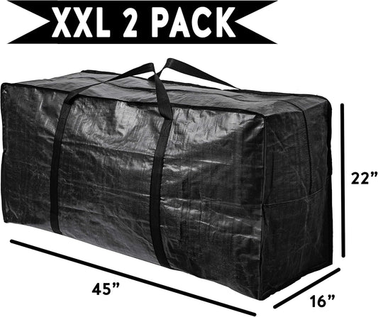 Extra Large Storage Bags, Jumbo Moving Tent Storage Bags, Foldable Big Black XXL Duffle Bag for Travel,Christmas Tree Bag, 42x23x13.5inch - 2PACK