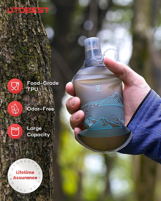 UTOBEST 500ml Soft Flask, 2 Pack Flexible TPU Hydration Water Bottle, Collapsible with 28mm Caliber for Running, Hiking, Cycling, Climbing, and Marathon Blue