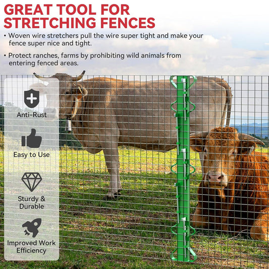 4ft Woven Wire Fence Stretcher Bar with 5 Wedges Heavy Duty Wire Stretcher Fence Tool for Farms, Ranches, Garden Barriers, Yard (Green)