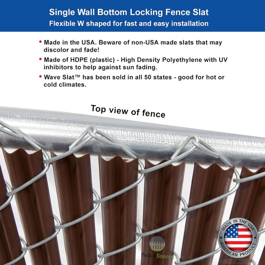 Wave Slat (9 Colors) Single Wall Bottom Locking Privacy Slat for 4', 5', 6', 7' and 8' Chain Link Fence (8 ft, Brown)