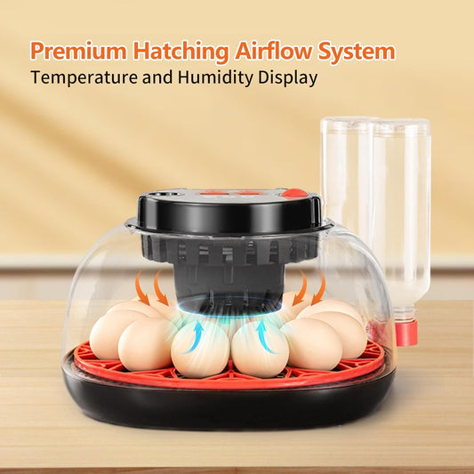 Incubators for Hatching Eggs, 12 Egg Incubator with Automatic Egg Turning and Humidity Control, Water Refill, Air Vent, 360° Viewing for Chickens Ducks Birds, Ideal for Farm, Classroom, Lab, Home Use