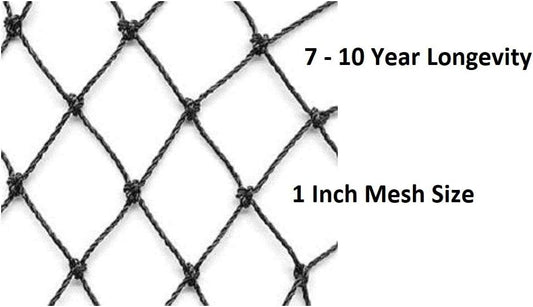 Poultry Netting 1" or 2" Mesh Heavy Knotted Nets Aviary Gamefowl Quail Chicken Bird Block Net Long Lasting Break/Burst 85/245 lb Polyethylene 8-10 Year Lifespan (25' X 50', 2)