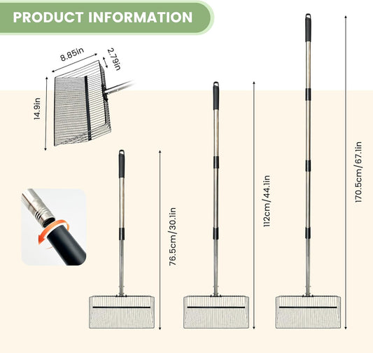 Chicken Poop Scooper for Sand + Work Gloves,Chicken Coop Scoop with 30" to 67" Adjustable Stainless Steel Long Handle,Sifting Shovel,Poop Scooper for Chicken Coop Rake,Farm Animals,Cleaning Tools