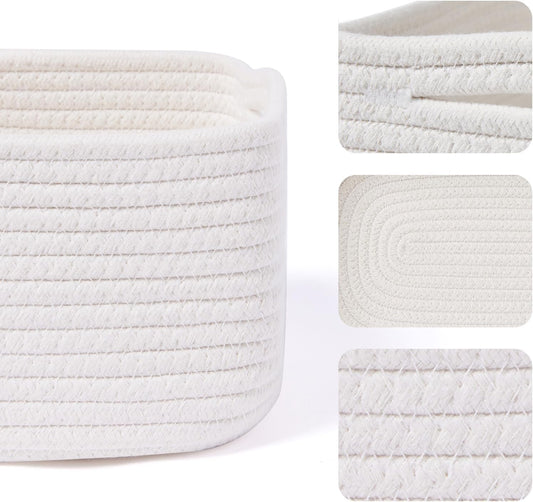Small Storage Baskets for Organizing | Closet Organizer Bins | Shelf Toy Basket | Woven Rope Baskets | Cube Decorative Box | Shallow Basket | 13x8.5x5.1” | 4 Packs Off White