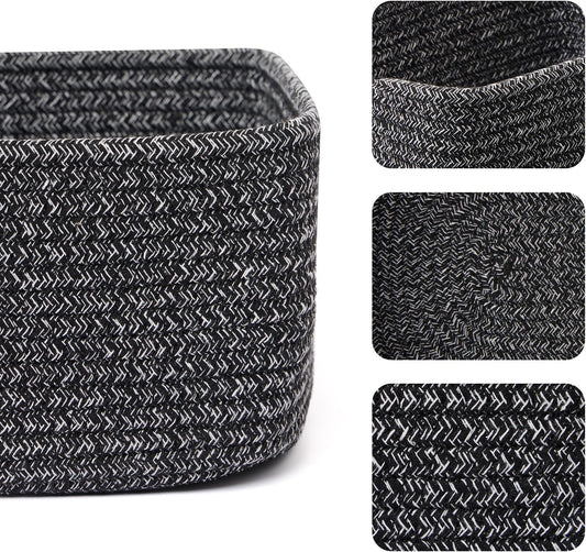 Small Storage Baskets for Organizing | Closet Organizer Bins | Shelf Toy Basket | Woven Rope Baskets | Cube Decorative Box | Shallow Basket | 11.5x7.5x4.7” | 3 Packs Black