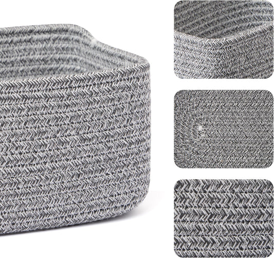 Small Storage Baskets for Organizing | Closet Organizer Bins | Shelf Toy Basket | Woven Rope Baskets | Cube Decorative Box | Shallow Basket | 11.5x7.5x4.7” | 3 Packs Mixed Grey
