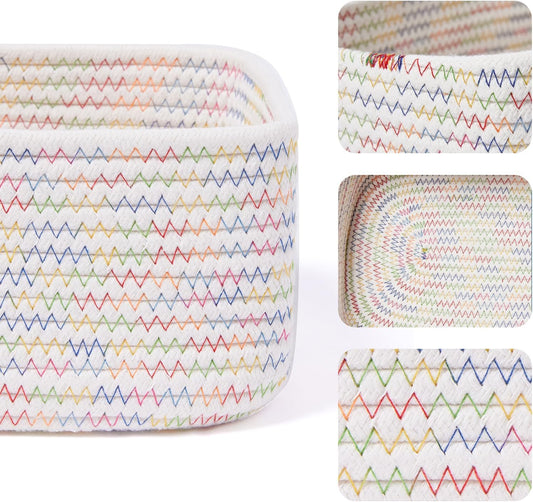 Small Storage Baskets for Organizing | Closet Organizer Bins | Shelf Toy Basket | Woven Rope Baskets | Cube Decorative Box | Shallow Basket | 11.5x7.5x4.7” | 3 Packs Rainbow