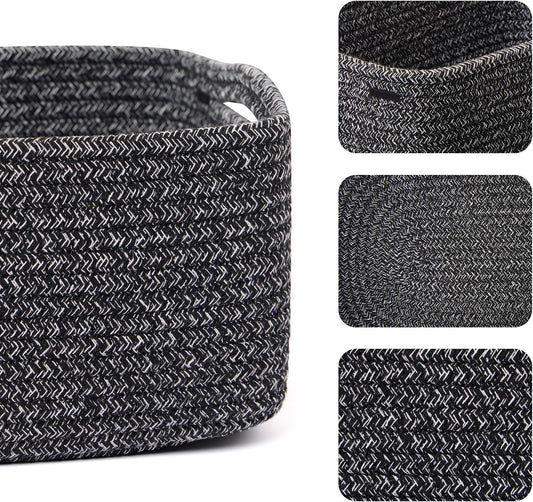 Small Storage Baskets for Organizing | Closet Organizer Bins | Shelf Toy Basket | Woven Rope Baskets | Cube Decorative Box | Shallow Basket | 13x8.5x5.1” | 4 Packs Black