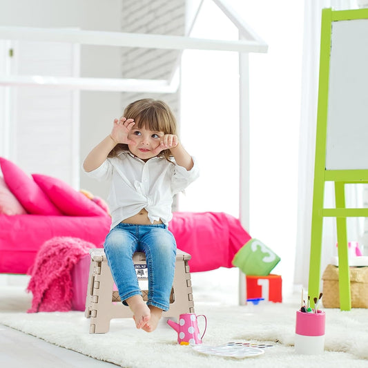 Delxo Folding Step Stool,9 Inch Lightweight Plastic Stepstool,Portable Collapsible Foldable Step Stool Non Slip Folding Stools for Kitchen Bathroom Bedroom in Khaki,1 Pack