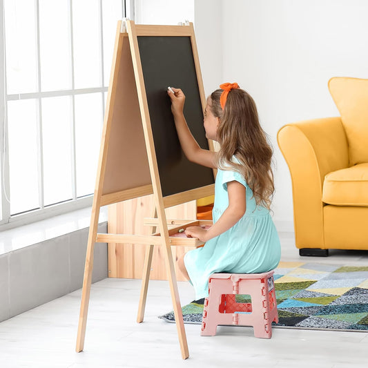 Delxo Folding Step Stool 9 Inch,Non-Slip Foldable Stools for Kids & Adults Up to 300 LBS,Kitchen Collapsible Fold Up Stepping Stool with Dotted 1 Pack,Pink