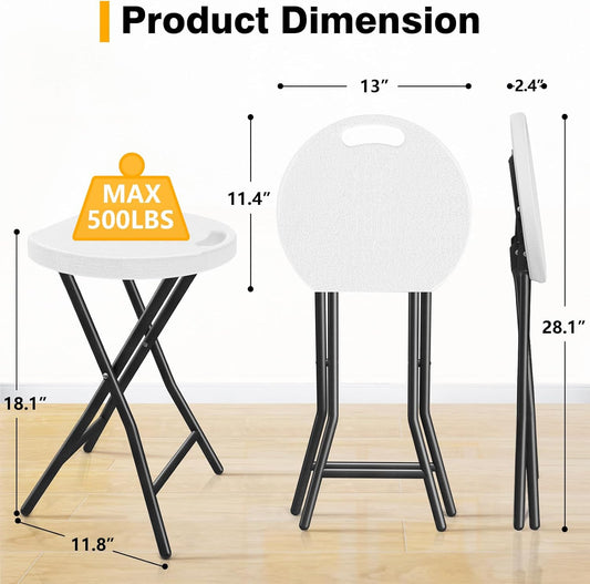 TAVR Furniture Portable Folding Chair with Handle, Heavy Duty Round Fold Stool Chair with 500lbs Capacity for Adults, 18 Inch Foldable Stool for Dorm, Kitchen, Vanity, Church and Outdoor use
