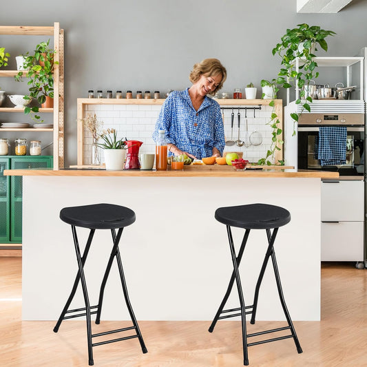 Suzile 2 Pcs 24 Inch Tall Folding Chair Portable Plastic Stool Chair Heavy Duty Foldable Bar Stools with Handle for Adults Kitchen Counter Room Home Camping Indoor Outdoor, 300lbs Capacity (Black)