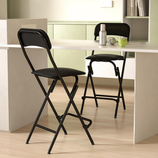 Thyle 2 Pcs Folding Bar Stool with Backrest, Tall Foldable Stool Chair Portable High Folding Bar Chair Counter Height Seat Leather Padded for Kitchen Island Shop Cafe Dining Room Black (27.5 Inch)