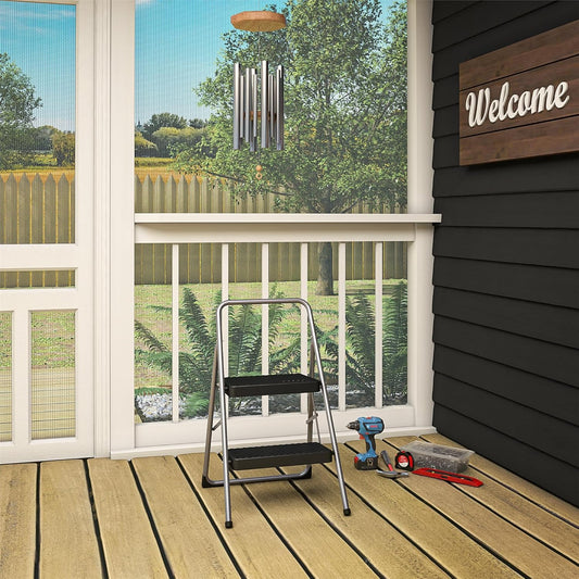 Amoise Folding 2-Step Stool, Non-Slip Portable Footstool 8'' & 17'' Dual Heights, Holds 300 lbs, Portable Footstool for Kitchen Home Toilet Bedroom Office Bathroom RV(Black)