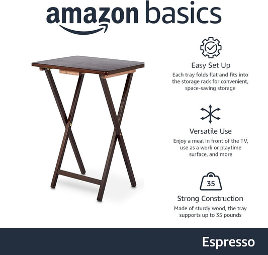 Amazon Basics Classic Foldable TV Dinner Tray Table with Storage Rack, 14.6 L x 19 W x 26 H inch, Espresso, 4-Pack
