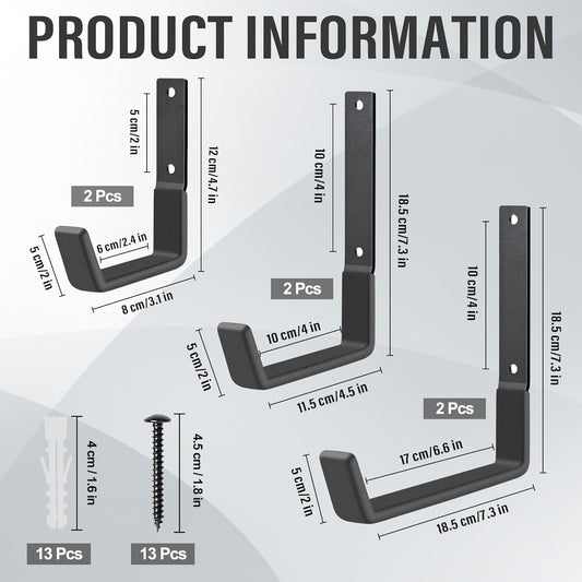 Heavy Duty Utility Hooks, Garage Storage Wall Mount Steel Hooks, Garden Tool Hanger, Garage Organizer for Tool, Ladder, Folding Chair, Hose, Ropes, Bike, etc.(2 S, 2 M, 2 L)
