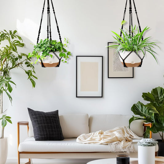 Hanging Planter Self Watering 10 Inch, 2 Pack Indoor Outdoor Hanging Baskets, Hanging Flower Pots with Drainage Hole & 2 Kinds of Plant Hangers for Garden Home Decor(Black Hanger