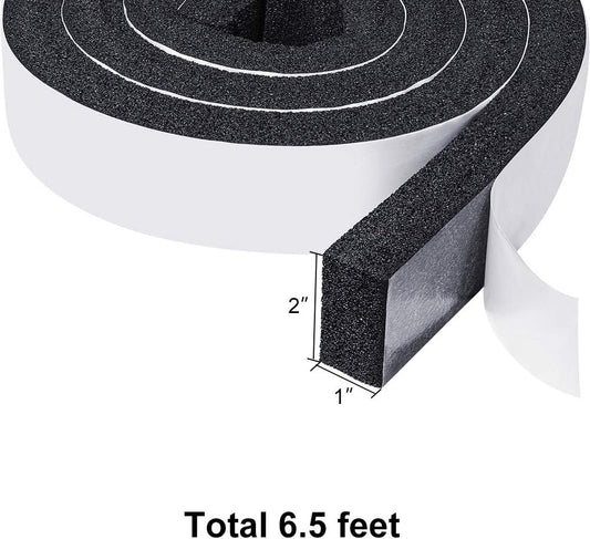 Insulation Foam - 2" W x 3/8" T - Adhesive Soundproofing Seal Tape Weather Stripping for Window AC Units