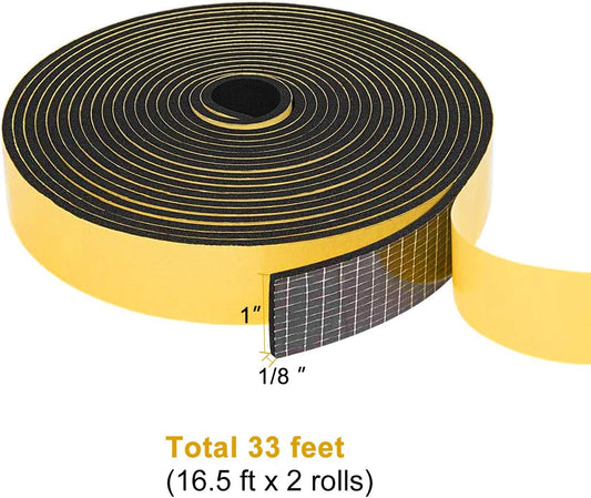 Adhesive Foam Strips -1" W x 1/8" T- Neoprene Weather Stripping High Density Foam Tape Seal for Doors and Windows Insulation