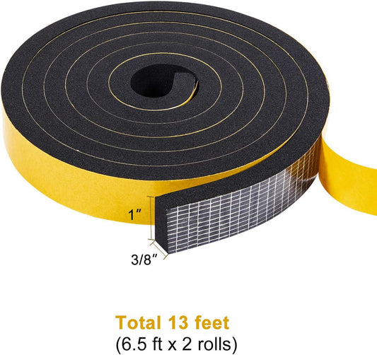 TORRAMI Adhesive Foam Tape 1 inch W X 3/8 inch T, Closed Cell Foam Weather Strip Seal Insulation (Total 13 Ft Length, 2 Rolls of 6.5 Ft Each)