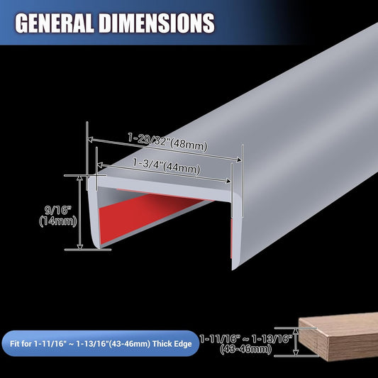 Rubber Edge Trim, Flexible Self Adhesive U Shaped Peel and Stick Edge Banding, 1-3/4"(44mm) U Channel Edge Protector, Edge Guards for Woods, Furniture, 20Ft, Grey Color