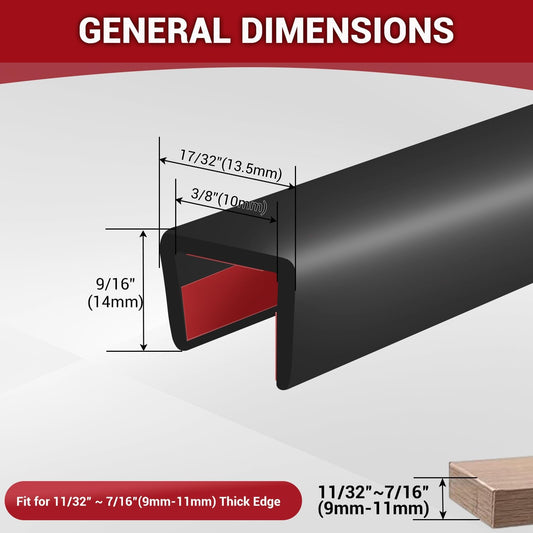 Rubber Edge Trim, 3/16" U Channel Edge Trim, Edge Protector for Glasses or Flexi Glasses, 3/16 in Flexible U Shaped Gasket, Black Color, Length 20 Ft