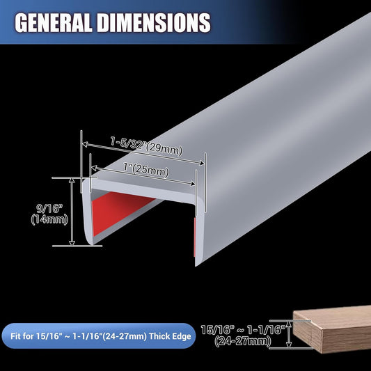 Rubber Edge Trim, Flexible Self Adhesive U Shaped Edge Banding, 1"(25mm) U Channel Furniture(Cabinet, Drawer, Desk, Table, Counter Top) Edge Protector, Edge Guards for Woods, 20Ft, Grey