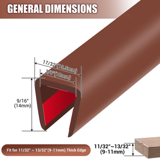 Rubber Edge Trim, Flexible Self Adhesive U Shaped Peel and Stick Edge Banding, 1-1/2"(38mm) U Channel Edge Protector, Edge Guards for Woods, Furniture, 20Ft, Brown Color
