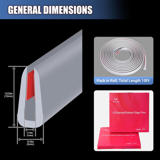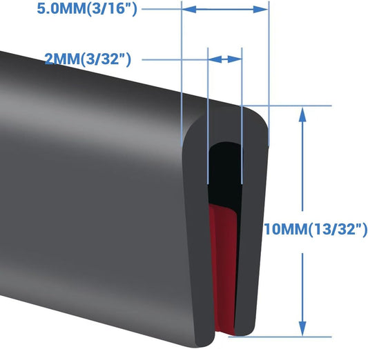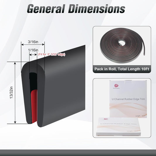 Rubber Edge Trim, Self-Adhesive U Channel Edge Trim, U Shaped Edge Protector for Glass, Mirror, Flexiglass, EPDM Material, Slot Width 3/16"(5mm), Length 10 Ft, Black