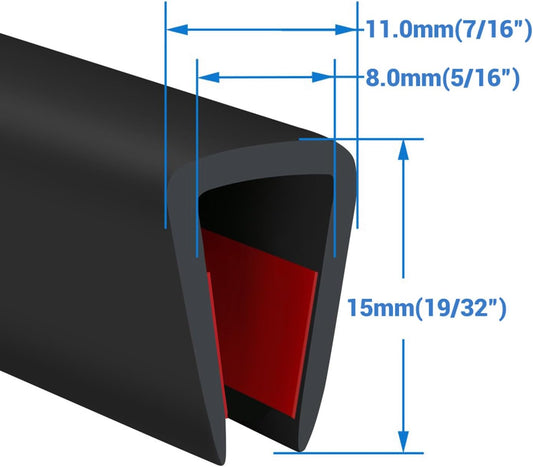 Rubber Edge Trim, Self-Adhesive Rubber Edge Protector for Sheet Metal, EPDM Material, Fit 5/16"(8mm), Black Color, U Channel Edge Trim, Total Length 20Ft