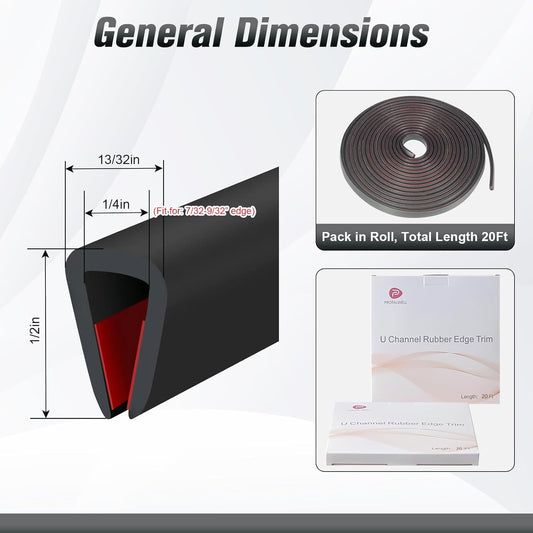 Rubber Edge Trim, Self Adhesive U Channel Edge Trim, U Shaped Trim for Plywood, Glasses, Mirror, Flexiglass, Sharp Edge Parts, Fit for 1/4", Length 20Ft, Black Color, Peel and Stick Plastic Trims