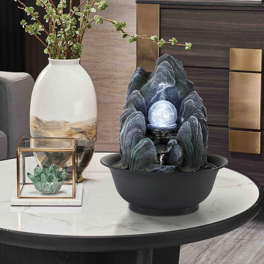 Rockery Indoor Water Fountain, Zen Meditation Tabletop Fountain with LED Lights & Crystal Ball for Home Office Bedroom 9 4/5"