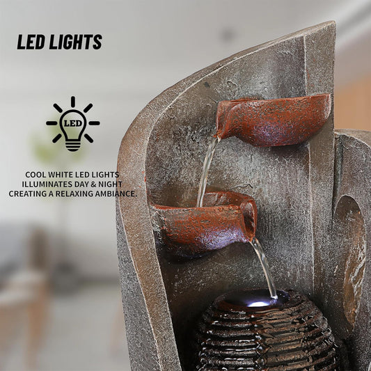 Indoor Fountain 3-Bowl Rockery Soothing Sound Tabletop Fountains Home/Office Decor with Natural River Rocks LED Lights Automatic Watering Pump(22044A)