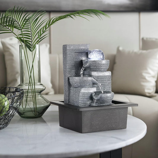 15.7” High Rock Falls Tabletop Water Fountain with LED Lights - 5-Tier Indoor Relaxation Waterfall Fountain, Small Cascading Water Feature for Home and Office Decor Gray-1