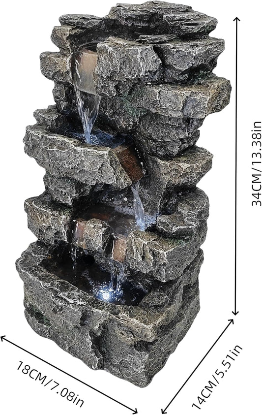 Indoor Desktop Fountain with Led Light - Layered Rock Waterfall Fountain, 13.77 x 5.9 x 5.9 inches, Silent Tabletop Water Feature Decor for Relaxation