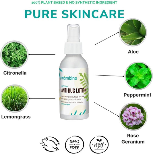 Anti-Bug Lotion DEET-Free – All-Natural Bug Lotion Travel Size Made with Nourishing Essential Oils – Bug Repellent for Babies, Kids, Adults, Camping, & More by Mambino Organics, 4oz