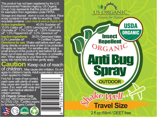 US Organic Mosquito Repellent Anti Bug Outdoor Pump Sprays, USDA Certification, Cruelty Free, Proven Results by Lab Testing, Deet-Free (2 oz Travel Size)