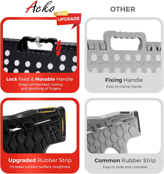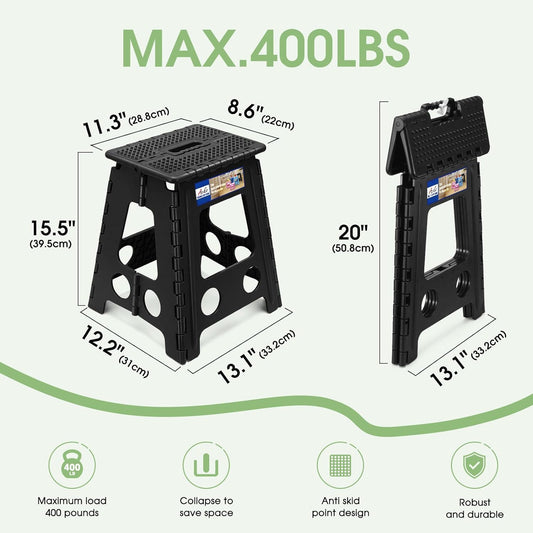 ACKO Folding Step Stool Foldable 17.5 Inch 400 lbs Capacity, Plastic Stools for Adults and Kids, Collapsible Stools for Kitchen, Stepping Stool with Handle (Black)