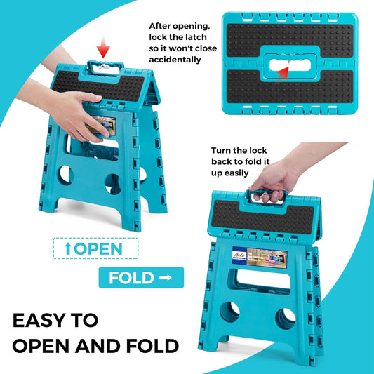 ACKO Folding Step Stool 13 Inch Stool Heavy Duty Plastic Foldable Step Stools for Kids, Stepping Stool with Handle, Folding Stool Suitable for Kitchen Hold Up to 300 LB (Teal 1PC)