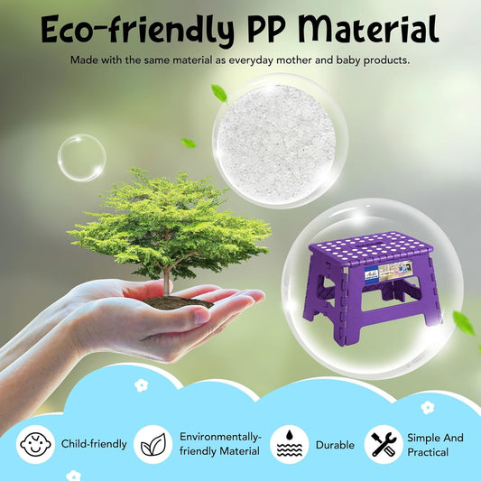 ACKO Folding Step Stool 9 Inch 300 lb Capacity, Plastic Foldable Step Stools for Kids and Adults, Folding Stools Suitable for Kitchen, Stepping Stool with Handle Purple 1PC