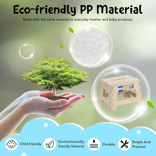 ACKO Folding Step Stool 9 Inch 300 lb Capacity, Plastic Foldable Step Stools for Kids and Adults, Folding Stools Suitable for Kitchen, Stepping Stool with Handle Khaki 1PC
