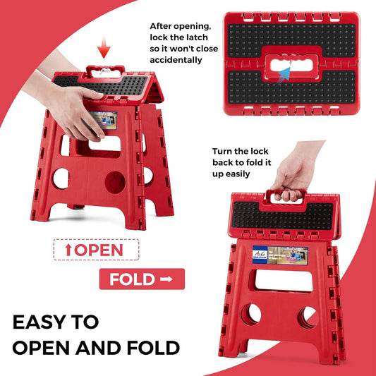ACKO Folding Step Stool - 13" Height Premium Heavy Duty Foldable Stool for Kids and Adults, Kitchen Garden Bathroom Stepping Stool (1 Pack) Dot Red