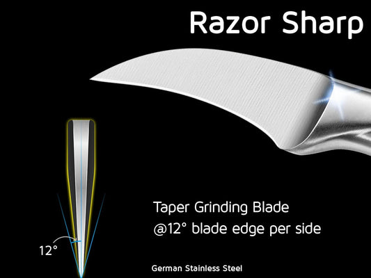WELLSTAR 2.5 Inch Birds Beak Paring Knife, Sharp High Carbon Stainless Steel Curved Blade for Fruit and Vegetable Peeling Garnishing Cutting – Silver