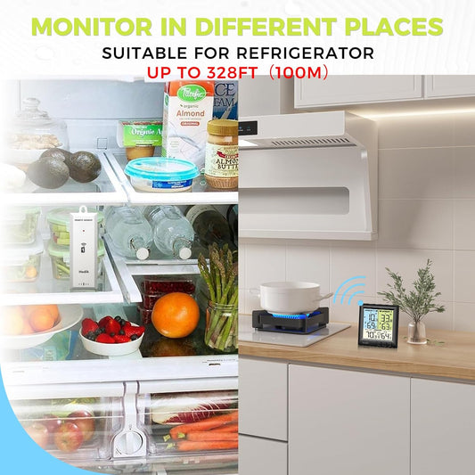 Wireless Freezer Thermometer with Alarm Refrigerator Thermometer, Fridge Freezer Alarm Thermometer Digital with 3 Adjustable Backlight and 330FT Remote Range for Kitchen Home Restaurant