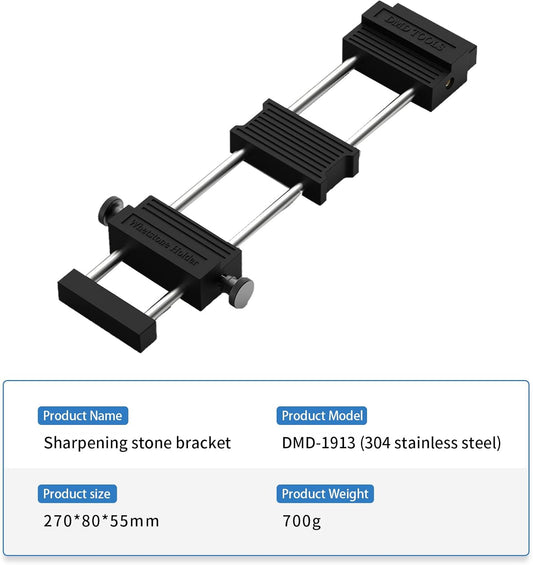 DMD Whetstone Holder with Quick-Adjust Knob | Heavy-Duty Stainless Steel & Non-Slip Rubber Base | Universal Sharpening Stone Clamp for Knives & Tools