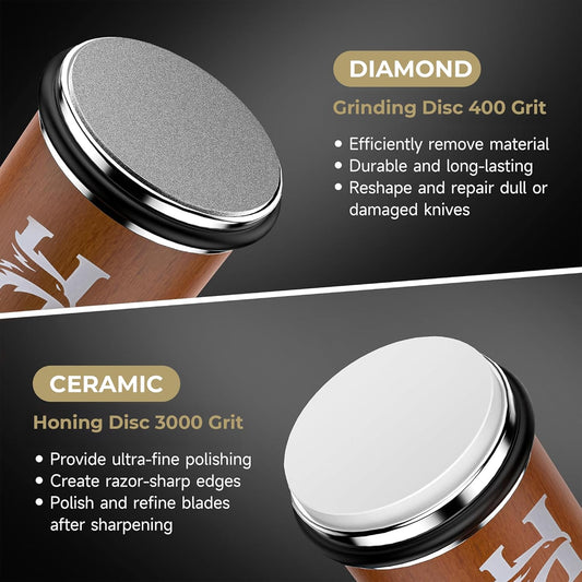 High Carbon Stainless Steel Rolling Knife Sharpener with 400, 1000 & 3000 Replacement Discs - Blunt Knife Sharpening Kit with 15 and 20 Degree Sharpening for Kitchen & Chef's Knives