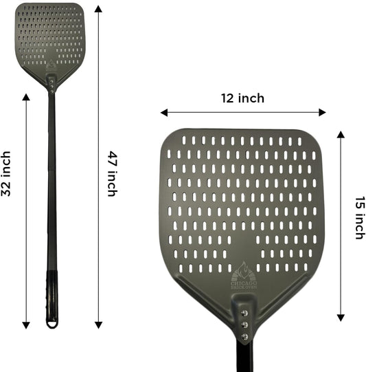 Perforated Pizza Peel - 12"x15" Anodized Aluminum Pizza Steel, 32" Handle, 47" Overall Length - Ideal Pizza Turning Peel for Pizza Oven, Brick Oven, Baking Bread